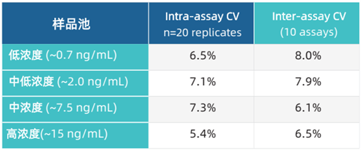 對已知濃度的4個樣品池進(jìn)行批內(nèi)(Intra-assay)和批間(Inter-assay)精確性評估。