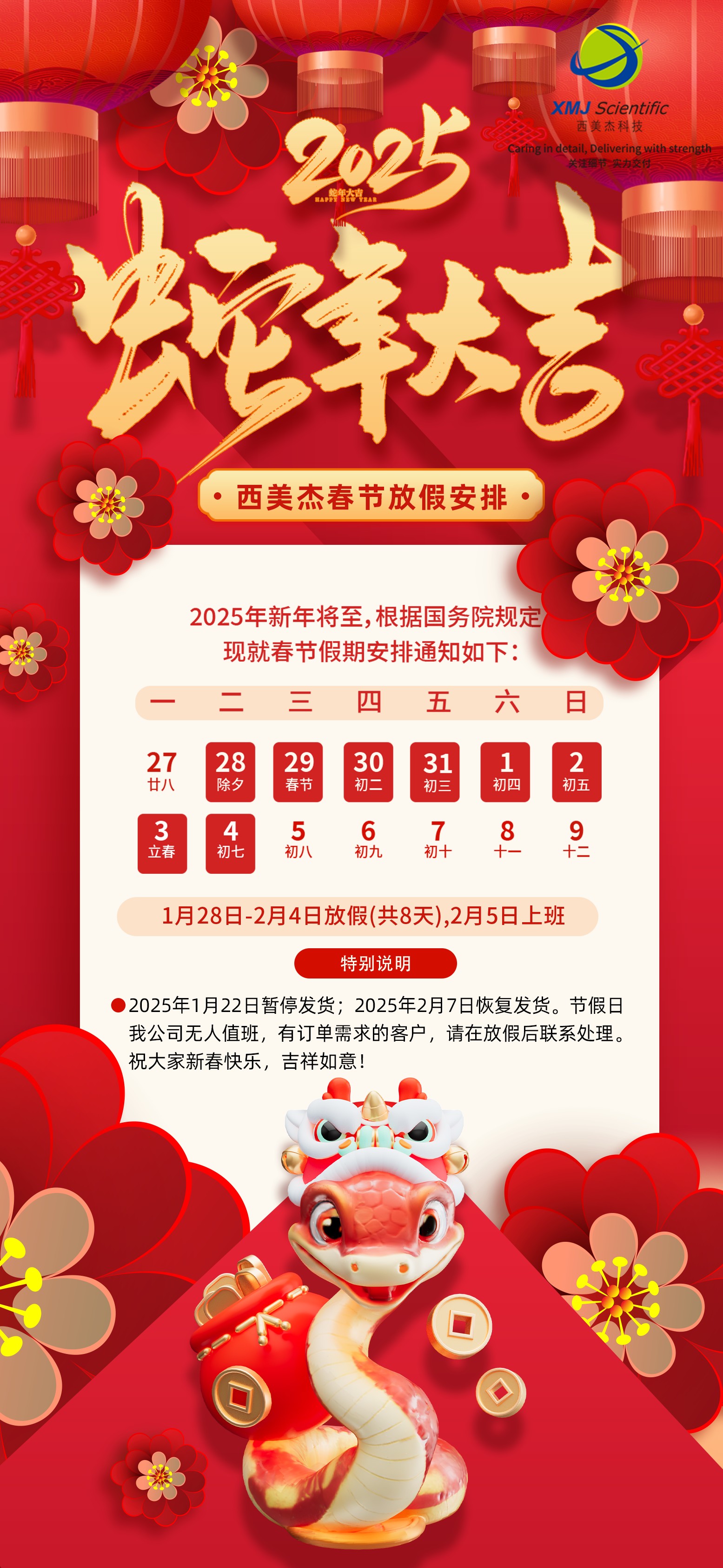 2025年西美杰春節(jié)放假安排