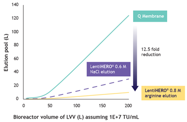 用0.8M精氨酸洗脫,HSV回收率可達到69%,LentiHERO®載量可達1.4E+8 IU/ml,同時實現(xiàn)高效的雜質(zhì)去除。